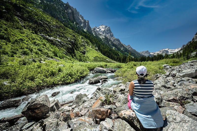 Since we slept very late the previous night, we had a late start in the morning. We headed straight to the Jenny Lake area to take the shuttle boat to the starting point of the Inspiration Point hike. Parking took a long time, we ultimately parked on the main road — about a mile away from the Jenny Lake visitor center. The queue to take the shuttle was also long and it was close to noon by the time we started our hike.