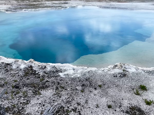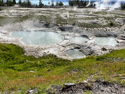 We visited the Norris Geyser basin in the morning and spent about 3 hours in the area. We arrived here early around 8:30 am and had no problems finding parking. As we were leaving the area around noon, the parking lot was full, and the overflow lot is about 0.5 miles away. Norris geyser basin has several small geysers and is perhaps the stenchiest part of Yellowstone with strong sulfur smells. It is also the hottest thermal area in the park. We did the boardwalks in both the porcelain basin and the back basin.