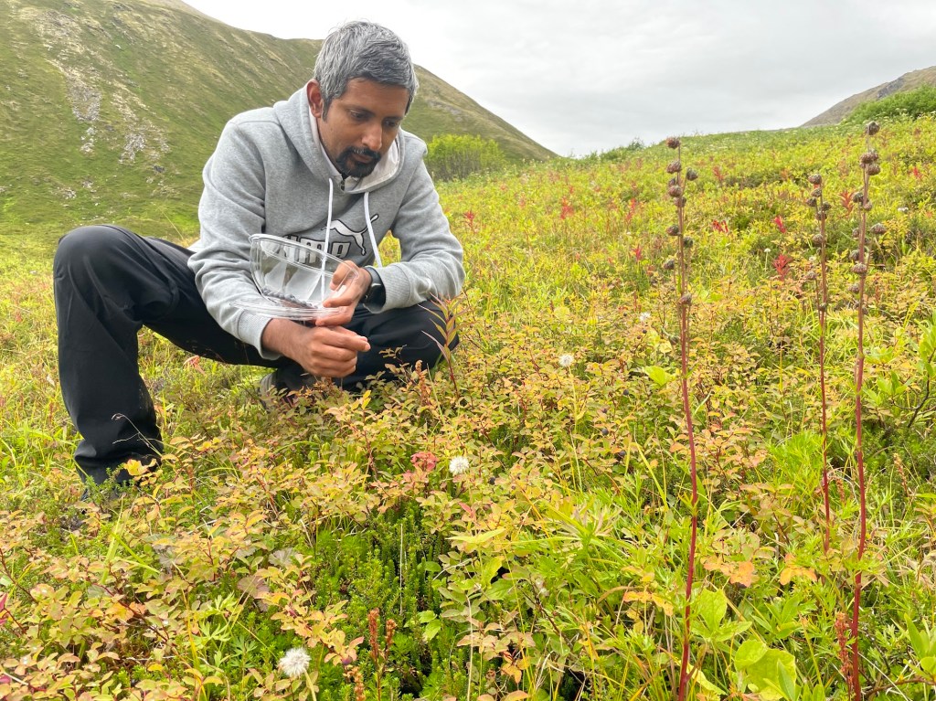Day 1 – Reed Lakes Hike + Hatcher Pass: We headed to Hatcher Pass for the Reed Lakes hike, which took us about six hours. Afterward, we drove to the highest point of the pass. This area is known for wild blueberries, and we saw a family foraging on one of the slopes. They kindly showed us how to spot and pick the berries, and we ended up with about a pint of blueberries for ourselves.