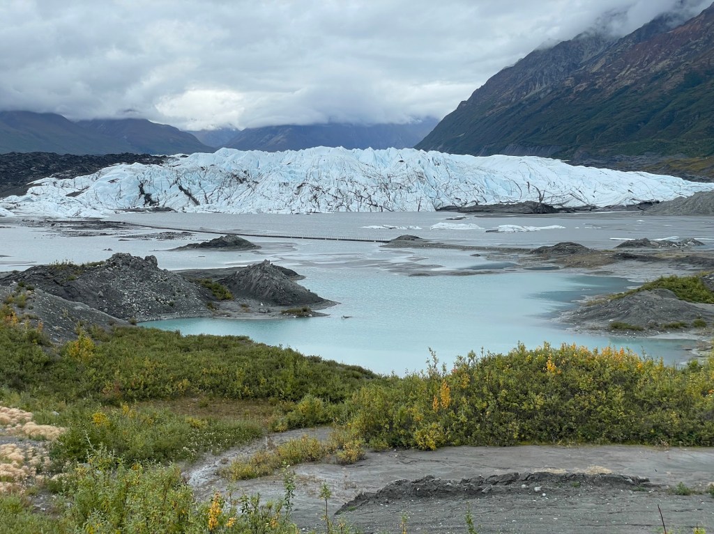 Day 6 – Drive to Anchorage + Matanuska Glacier: We drove the scenic Valdez-to-Anchorage highway, stopping for waterfalls and glacier views along the way. About two-thirds of the way, we reached Matanuska Glacier and joined a guided tour, the only way to access it. Even though it’s a bit pricey and touristy, we had no trouble getting walk-up tickets and enjoyed it a lot. The tour lasted about two hours with a small group of eight people. We then continued to Anchorage, stopping in Palmer for dinner and arriving around 9 p.m.